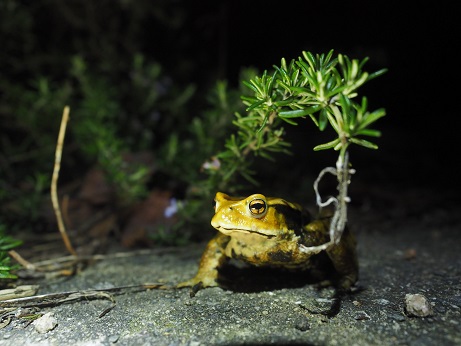 ヒキガエルが産卵のために水場に集まってきていました。が、