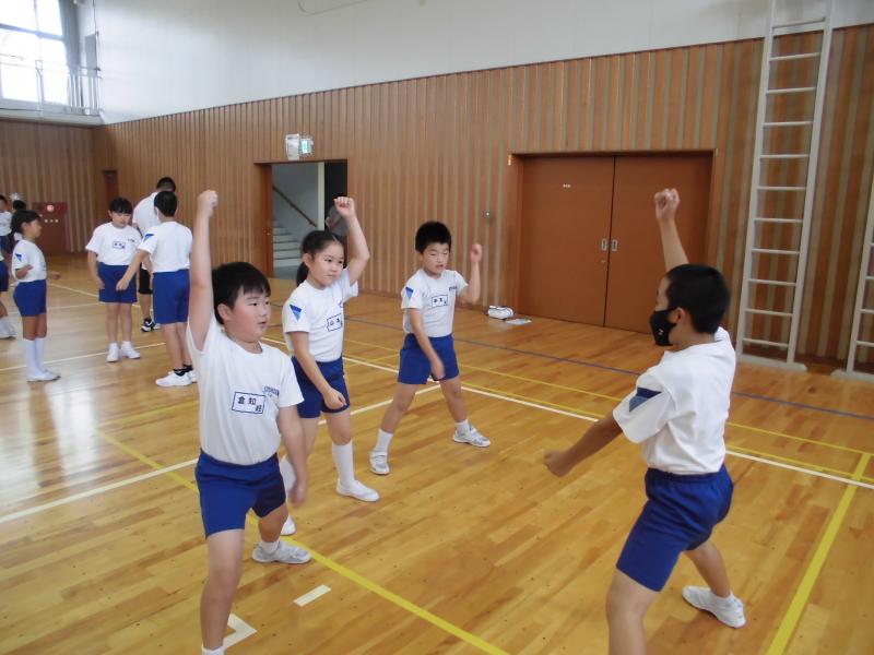 4年生は先輩として三年生に踊り方を教えて、細かい手の向きや、体の動かし方を伝えていました。