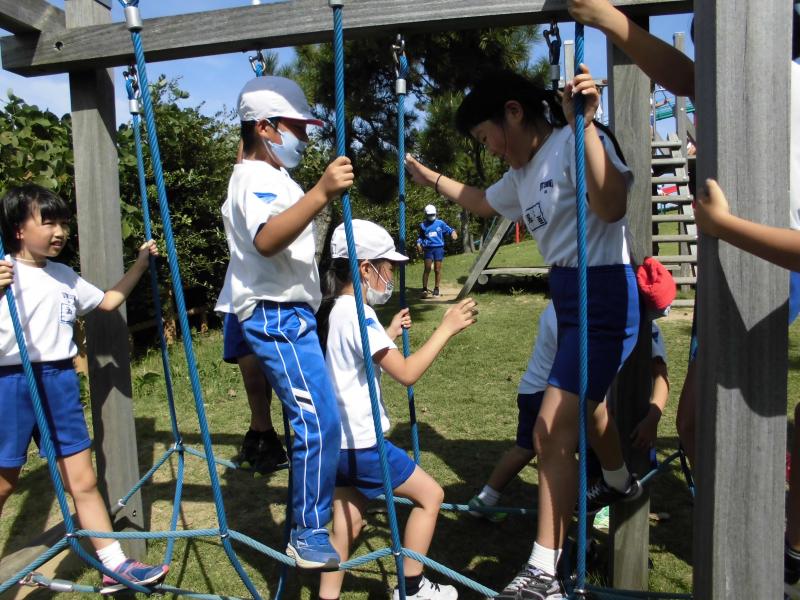 晴天の中、なかよし遠足が行われました。6年生のリードのもと、笑顔いっぱいで遊ぶ様子が見られました。