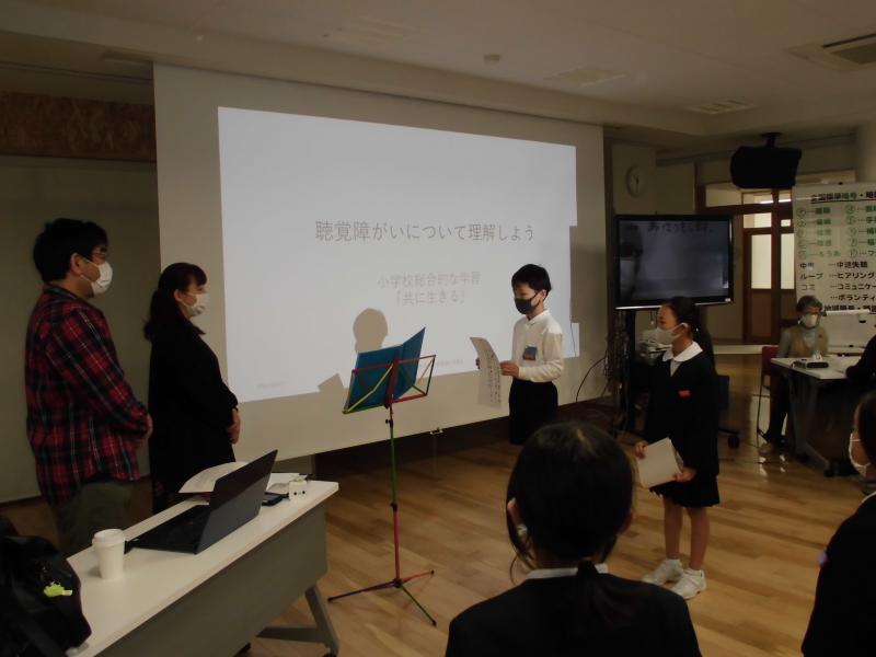 10月総合的な学習で聴覚障害者の濱本さん夫妻と、要約筆記者の方を招いて、お話を聞きました。