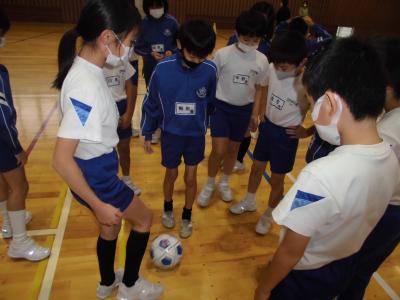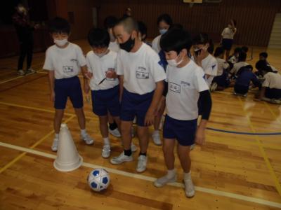 子ども達は、アイマスクをすると自分の位置やボールの位置、ゴールの位置もすべて分からないことに気がつきました。シュートが決まったかどうかも分からないことにびっくりし、不安を感じたようです。そこで学んだことは、周りの人とのコミュニケーションの大切さでした。見えない人は見える人にたずねる、見える人は見えない人に言葉や体に触れて教えるというものです。友達がすぐ近くで教えてくれてよかったと感じていました。普段から声かけは大切だとも感じていました。この学習を通して、「相手意識」「思いやり」の意識が高まったように思います。今後の学習や学校生活が更に深まりそうです。