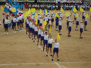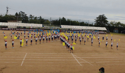 9月23日(金)、6年生にとって小学校生活最後の運動会が行われました。時間帯によっては小雨も降る中、それに負けない元気な姿で競技や準備など、それぞれの役割をしっかりこなしてくれました。個人走では最後までしっかり走りきる姿、応援では、練習含め最も大きな声を出そうと振り絞って頑張る姿、係の役割では、競技の裏で自分の役割をしっかりこなし、下級生を誘導する姿、団体演技では、観客席にまで届く大きな迫力ある音でフラッグを振る凜々しい姿、対抗リレーでは、一人でも追い越そうとあきらめずに走る懸命な姿・・・たくさんの輝く姿を運動会を通して見ることができ、とても嬉しく感じました。運動会を通して学んだことを活かし、中学校進学に向けより大きくなっていってほしいと思います。