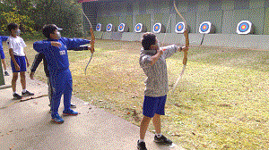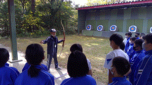 アーチェリー体験は、自然の家の中でも全国でここでしかできない貴重な体験でした。使い方によっては危険でもあるため、丁寧に道具の安全な使い方を説明していただきました。道具を大切に使うことも意識しながら、高得点目指して練習し、上達することができましたね。