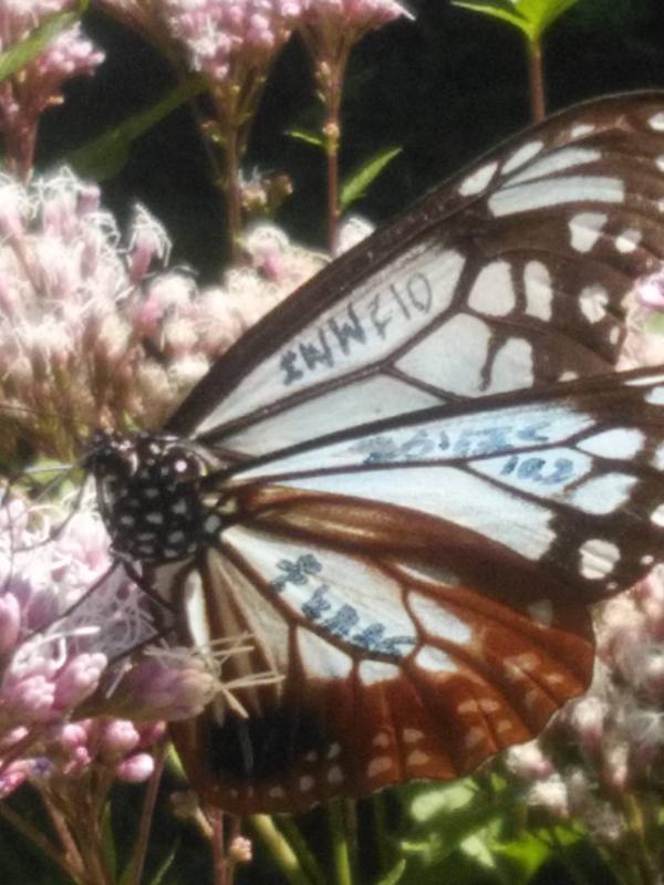 その蝶の羽には、「かほく」「10.2」「そとひ」という文字が読み取ることができたことから、外日角小でマーキングした個体に間違いありません。