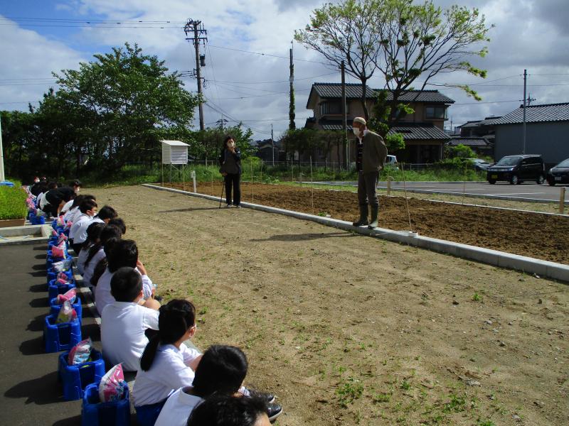 1時間でみんな植えることができました。たくさんミニトマトがとれるといいですね。