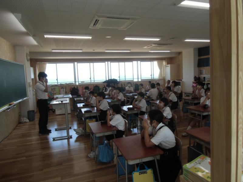 今日の2限目に避難訓練を行いました。いつものように全体で運動場や体育館に避難することは、3密を防ぐために実施しませんでした。