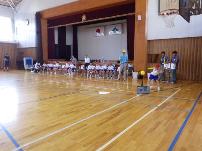 二水ボールとは県立二水高校の文化祭より発祥した、野球に似た新競技だそうで、マシンで宙に浮かしたボールをバットで打ちます。投げたボーではないので、どの子も打ちやすそうでした。