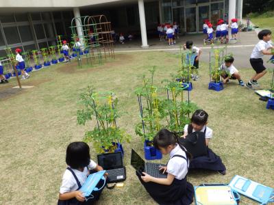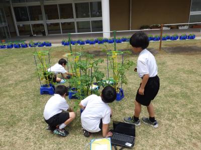 2年生が生活でミニトマトの観察をしていました。