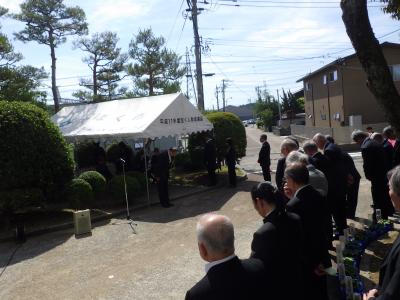 かほく市出身(旧宇ノ気町)の西田幾多郎博士の命日(6月7日)に合わせ、第81回寸心忌碑前献花式が宇ノ気小学校前庭で行われました。油野市長のあいさつの後、出席者が献花し、最後の宇ノ気小学校の6年生児童が「西田先生を讃える歌」を歌いました。