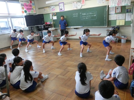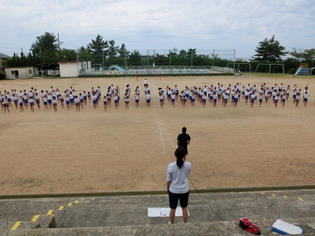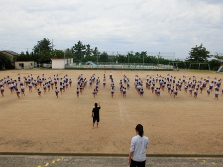 今日の2限目に、昨日延期になった全体練習(開会式)と応援練習を行いました。運動会まであと3日、日々レベルアップです。