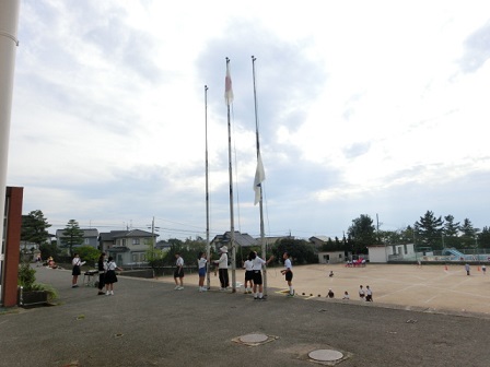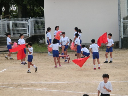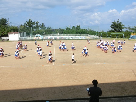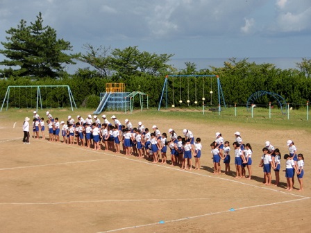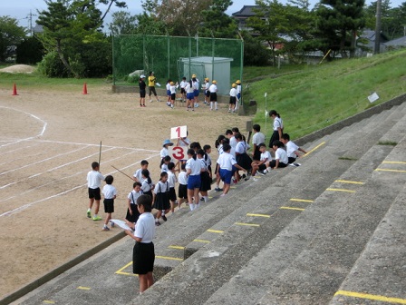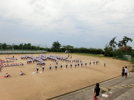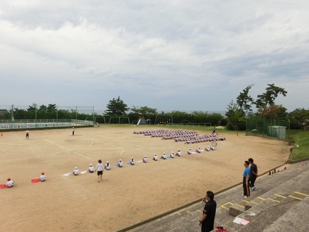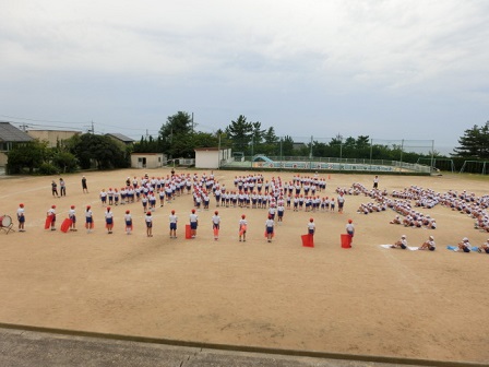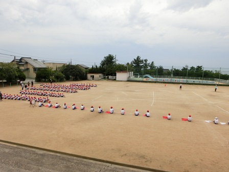 いよいよ明後日は運動会。3限目に最後の全体練習を行いました。明日の午後は5・6年生と先生達で、運動場の準備をします。心配なのは台風の動き。16日をめざして練習を頑張ってきたので、土曜日にやり遂げたいです。天候によっては、開始を10分程度早めたり、プログラムの内容を一部省いたり、順番を入れ替えたりなどするかもしれません。どうかご了承下さい。・・・(雨から)何とか逃げ切りたいです!!!