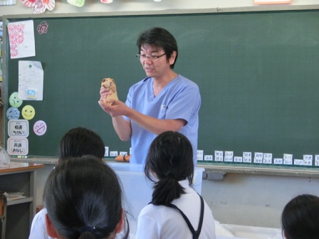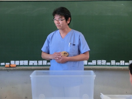 7月の大雨の時に、うさぎの地下王国?が崩れ、地下通路からうさぎが逃げ出してしまいました。いつもお世話していた飼育委員会の子たちが、とても残念がっていました。近隣の学校に聞いても、分けられるほどうさぎのいる学校がなくて、困っていました。そこで、いつもお世話になっている田村獣医師さんに相談したところ、モルモットを一匹もらえることになりました。昨日の委員会活動の時に田村先生が来て下さり、お世話の仕方を教えて下さいました。飼育委員会一同、大喜びです。外小に、仲間が増えて良かったね!