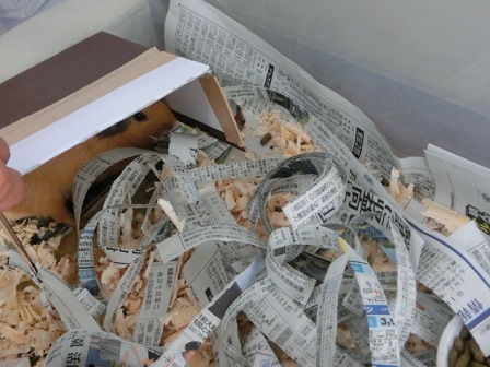 箱に入って隠れています!?早く外小のみんなに慣れてね!
