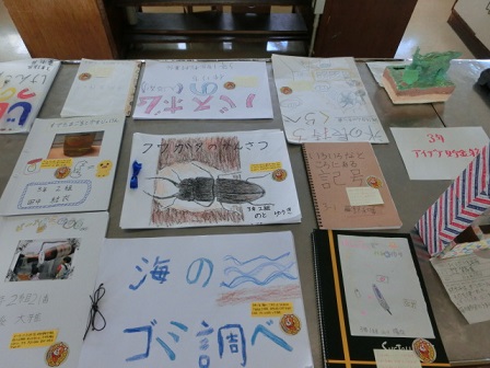 昨日まで、夏休み作品展が行われました。工作や科学研究、自由研究に手作り絵本など、たくさんの力作が揃いました。夏休み中、子どもたちはとてもよく頑張りました。おうちの人の応援があったから、あんなに素晴らしい作品ができたのですね。ありがとうございました。