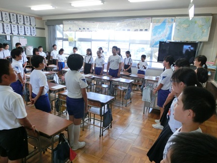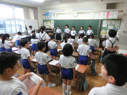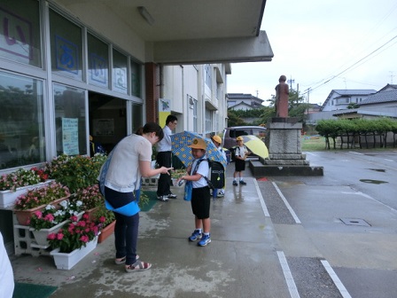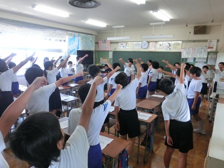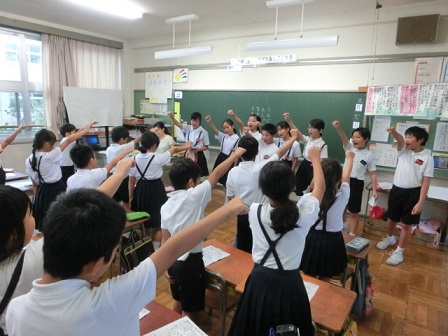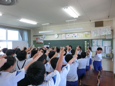 2学期になり始まった「あいさつじゃんけん」の取組。朝がとても楽しく始まっています。お互いにあいさつしてじゃんけんをする・・・簡単にできて笑顔が溢れます。玄関先であいさつ運動をして下さっている保護者の方も協力して下さり、良い触れ合いとなっています。仲良くなるとあいさつが盛り上がりますね。
