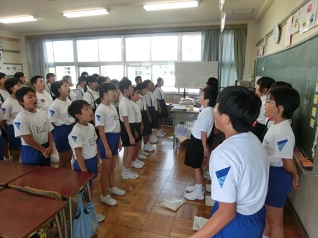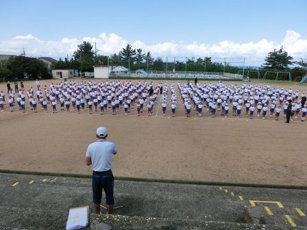 運動会に向けてどの学年も動き出しています。特に6年生は学校のリーダーで、応援については、夏休み中からいろいろ準備をしてきました。お昼のじっくりタイムの時に、大きな声が学校中に響き渡っています。7日(木)の朝から、6年生が各学年の教室に行って応援練習を指揮します。6年生のリードのもと、みんなで心を一つに頑張ってほしいです。