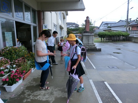1と15はあいさつの日です。企画委員会の児童が、信号のところであいさつ運動を行いました。地区の方や保護者の方々も出て下さり、有り難かったです。