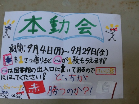 運動会練習と並行して、本の運動会=本動会が行われています。雨で外遊びができないときや、秋の夕べに本を読むのもいいですね。こちらも頑張って欲しいです。