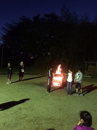 宿泊2日目の夜に行われたキャンプファイヤーの様子です。友情の大切さ、絆の素晴らしさをみんなで感じ取ったことでしょう。