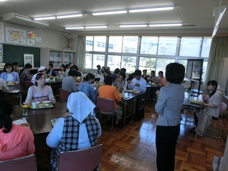 19日(金)お昼に、1年生の保護者の方を対象にした給食試食会が行われました。6年生が合宿中とあって、5年生が給食準備の大役を果たしました。会の内容は、給食準備の様子の参観、試食、栄養教諭のお話です。栄養バランスや安全に配慮され、一食270円で提供される学校給食。子どもたちには、しっかり食べて、作って下さった方への感謝の気持ちも忘れないで欲しいものです。レジュメの中では特に、食卓はもう一つの学校(家族の絆、会話)、食べ物の好き嫌いは、人や行動の好き嫌いにつながると書かれていたことが、心に残りました。PTA育成部の皆さん、素晴らしい機会を作って下さり、ありがとうございました!