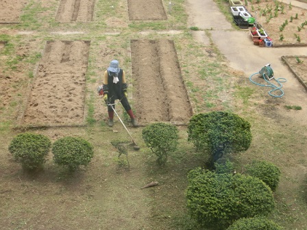 コミュニティスクールのコーディネーターの駒井さん、畑の先生としてお世話になっている駒井さんが中庭の草を刈って下さいました。いつもいつも助けて頂いています。本当にありがとうございました!