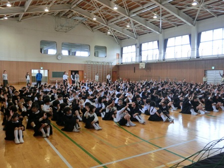 昨日の2限目に今年度初めての避難訓練が行われました。グラウンドの状態が良くなかったので、急きょ体育館への避難としました。いざというときは、何が何でも外ですが、今回は「おかしもすき」=「おさない、かけない、しゃべらない、もどらない、すわって、話をきく」の徹底を図ることに重点を置き、訓練しました。基本的なことをしっかり身に付け、次回の休み時間の避難へつなげたいと思います。