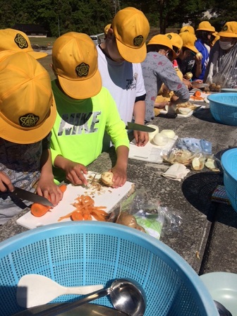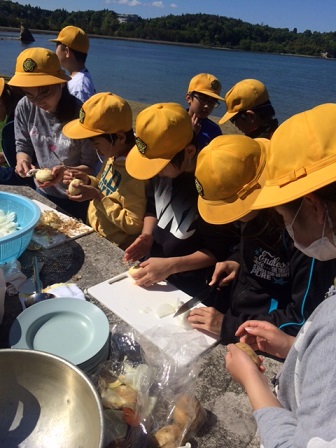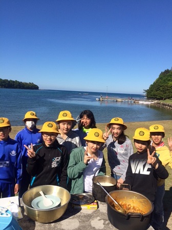 今日の午後は、野外炊飯、カレー作りです。おいしいカレーができたようです。海を見ながら食べる手作りカレー・・・おいしかったでしょうねぇ。