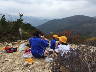 頂上で昼食。天気は何とか大丈夫だったようです。