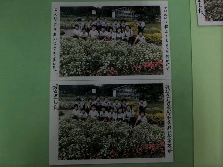 環境委員会の子どもたちが、1学期に中庭花壇の花植えに来てくださった地域の方々にお礼のはがきを書きました。今年は例年以上に見事な花々となり、長い間楽しませてもらいました。小さなお子さんを連れたご家族の方が、花壇の中で写真を撮っていらっしゃる場面を何回も見ました。本当にお世話になりました。もうすぐお手元に届くと思います。