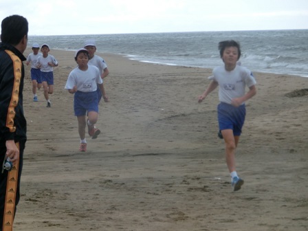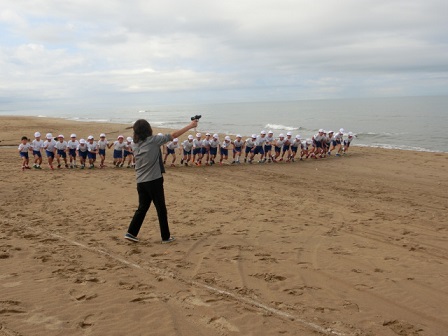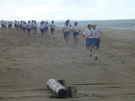 昨日、マラソン大会が外日角海岸で行われました。曇り予報で、暑くもなく寒くもなく、絶好のマラソン大会と思われたのですが・・・急に黒雲が出現し、5年生は大雨の中の力走、6年生はやむなく今日に延期されました。雨は止んでも、排水溝から流れ出る水が砂を削り大きな川のような状態となりできなくなりました。一昨年も高学年の時に大変な雨風となったのですが、川ができる心配は、あまりありませんでした。コンクリートが多くなり、一気に流れ出る水の量が大量になったからでしょうか。自然の様子が変わってきているのを実感します。何はともあれ、子どもたちは、どの子も大変よく頑張りました。苦しくても最後までやる抜くことの大切さを、子どもたちが見せてくれました。(PTAだよりのコーナーにも紹介されています。)