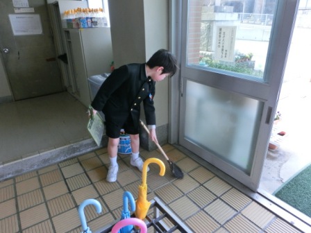 整備委員会も朝掃除に取り組んでいます。この子は砂を集めるとき、ほうきで集まらなかったタイルの溝の砂を、指であつめていました。思わず、「ありがとう!」でした。