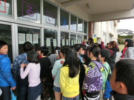 今日の午前11時に新しいクラスの発表がありました。多くの子どもたちや保護者の方が学校においでました。みんなわくわく・どきどきですね。