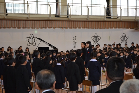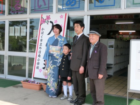 校庭の桜の花は満開、暖かい春の日差しに包まれた今日、平成28年度の入学式を行うことができました。入学を心待ちにしていた58名の新入生のみなさんが、外日角小の仲間入りです。待ちに待っていたのは、2~6年生も同じです。6年生が卒業してから寂しかった学校に、また元気な声が響き渡りました。明日からの学校生活が楽しみです。