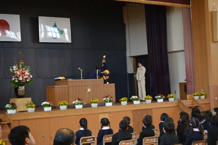 昨日の冷たい雨と風で、校庭の桜の花も散り始めています。それにしても、入学式の日は春を感じるよい日となり、ピンポイントで本当によい日でした。その後、新入生や在校生は元気に登校してくれています。うれしい限りです。遅くなりましたが、入学式の日の様子をもう少し紹介します。