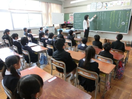 どの学年も進級して1週間が過ぎていますが、よく頑張っています。初めは、玄関で前の学年の時のルートへ行こうとした子たちも(4年生:3年教室と4年教室では使う階段が違うのです)、今はすっかり慣れ、一つ進級した思いが、落ち着きという姿になって表れているように思います。毎日の学習を頑張って欲しいです。今日も、いくつかの授業風景を紹介します。