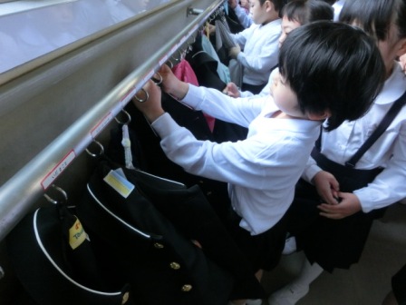 男の子の制服の金ボタンを外すのは、結構むずかしいことでしたが頑張っていました。