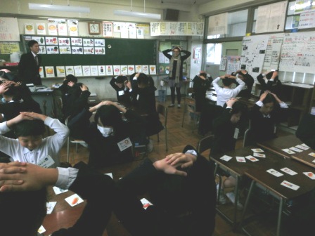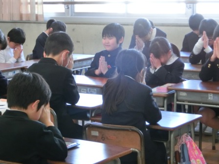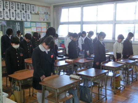 5年前の平成23年3月11日の午後2時46分に、東日本大震災が発生しました。その時間に合わせ、全校児童で黙祷をしました。