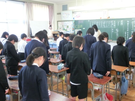 教頭先生の放送のお話を聞いて、全児童で黙祷