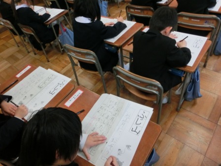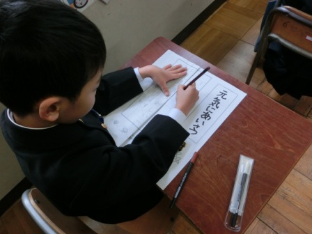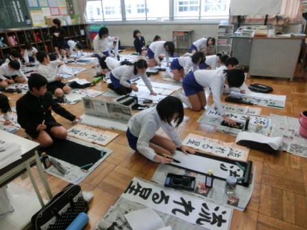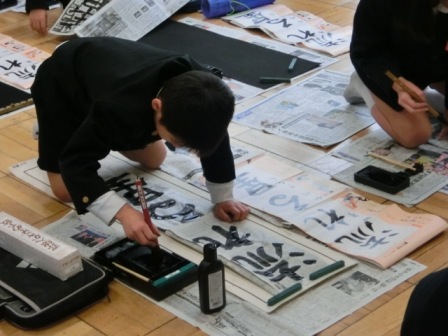 さて今日は3・4限目に書き初め大会が行われました。様子を紹介します。