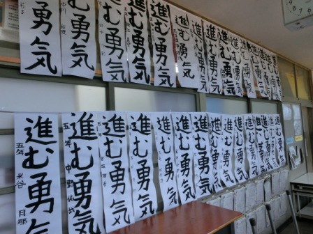 5年生教室へ向かったときにはもう張り出していました。書いている姿ではなくごめんなさい。