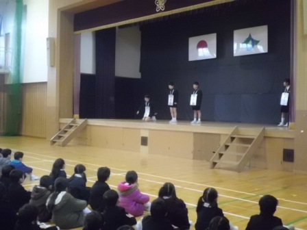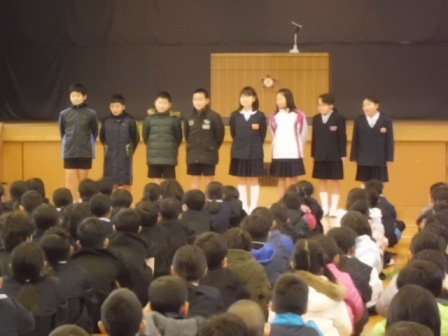 「一月は行く 二月は逃げる 三月は去る」と言われますが、月日のたつのは早いもので、もう1月が終わろうとしています。2限目に全校集会がありました。様子を紹介します。