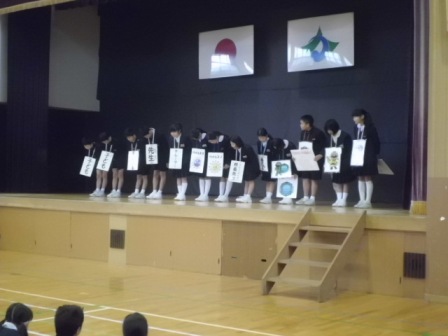始業式には、「新年にあたり皆さんは目標を立てましたか、まだの人は今日立てて下さい」といいましたが、2年生は3学期の目標が、具体的にしっかり持てていますね。目標のある人とない人では、今後の成長が全く違ってきます。日々、努力するからです。心も体も、もっともっと大きくなって下さいね。期待しています。