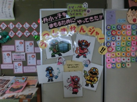6年生教室も張り出していました。「新たな決意」6年生にふさわしい素晴らしい言葉です。心が伝わりますね。
