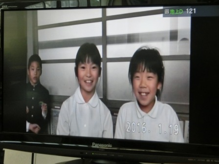 今日のお昼の放送では、集会に向けてのインタビューが流れていました。目標回数やがんばりたいことです。職員室のテレビ画面をカメラで撮影しました。答えているのは3年生。(今日は1~3年生でした。明日は4~6年生だそうです。)