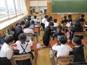 5年生が2年生にパソコンの使い方を教えました。