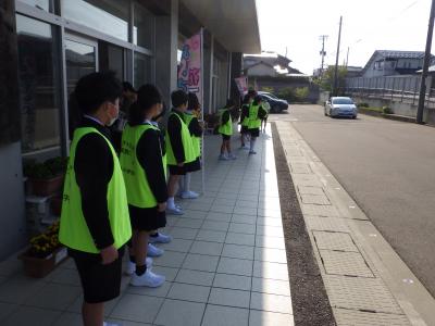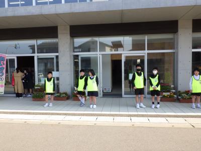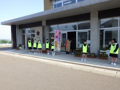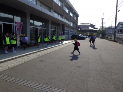 新しい5,6年生企画委員があいさつ運動に取り組んでいます。