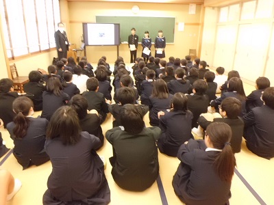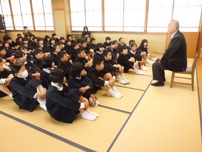 12月5日(月)の5限目に秋浜区長の釜井さんのお話を聞く機会をいただきました。釜井さんのお話ではどんなことでも謙虚な気持ちを持ち、日頃当たり前に思っていることにしっかりと感謝することの大切さを改めて気づかされました。子どもたちもきっとなにか感じるところがあったと思います。