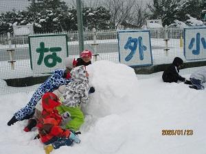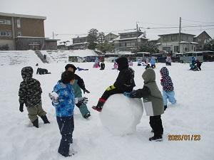 1月23日金曜日に、1年生みんなで雪遊びを行いました。大きな雪玉をみんなで転がしたり、雪合戦をしたり、みんな楽しく遊んでいました。