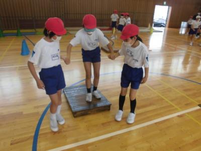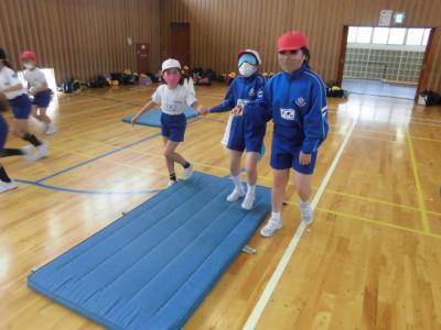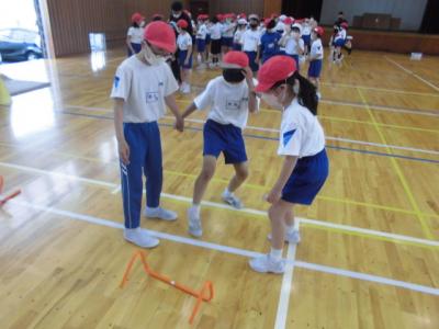 3人1組となり、アイマスクを付けている児童の手を引いて、工夫しながら誘導する姿がありました。