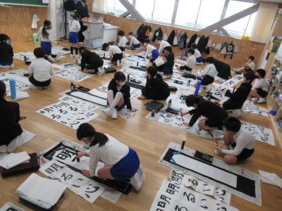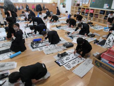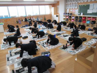 今日は書き初め大会があり,一生懸命に書いていました。